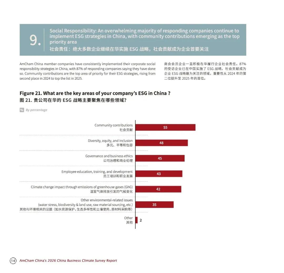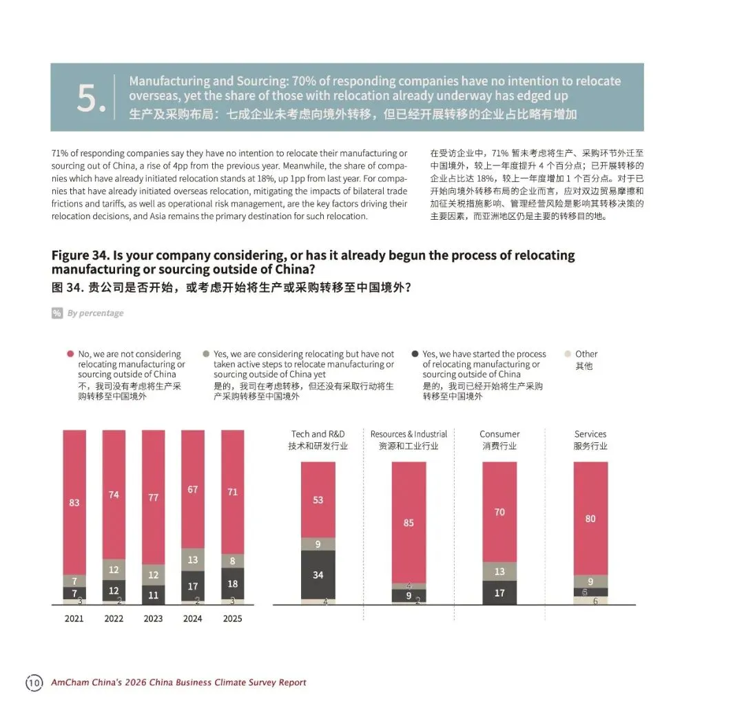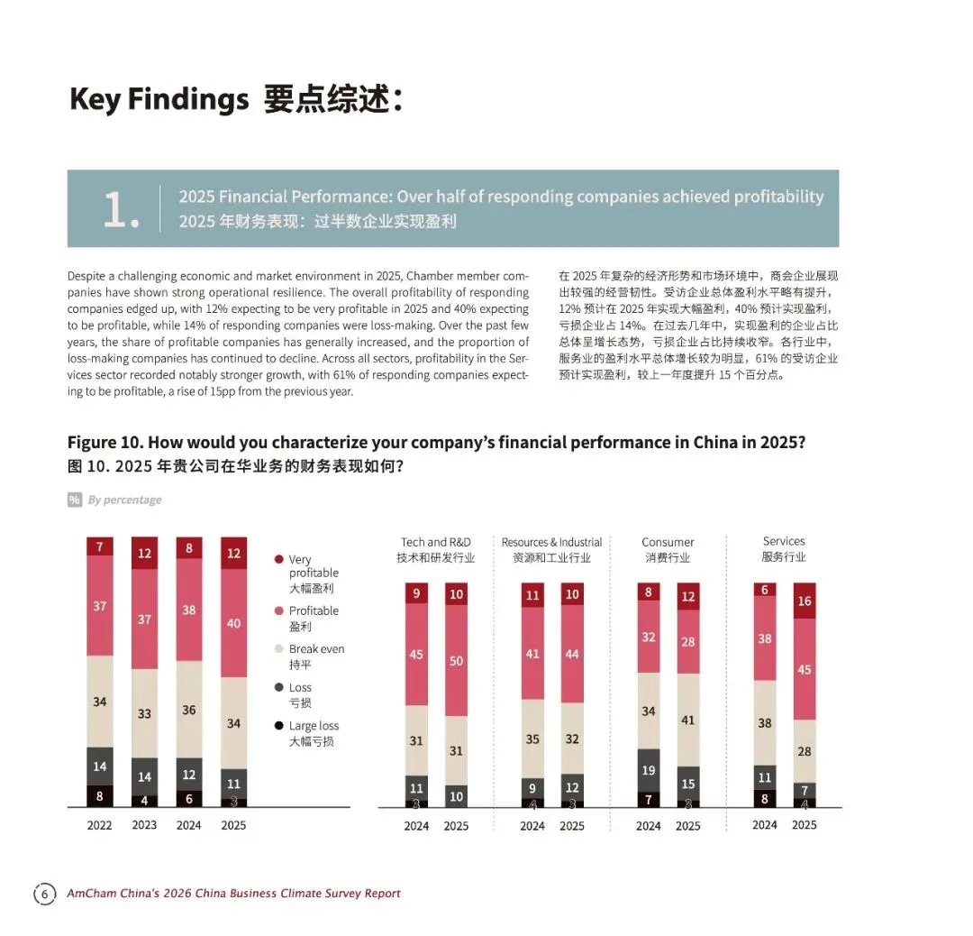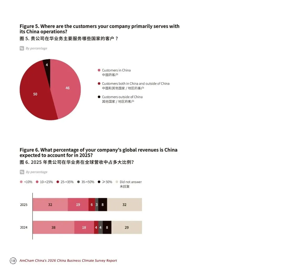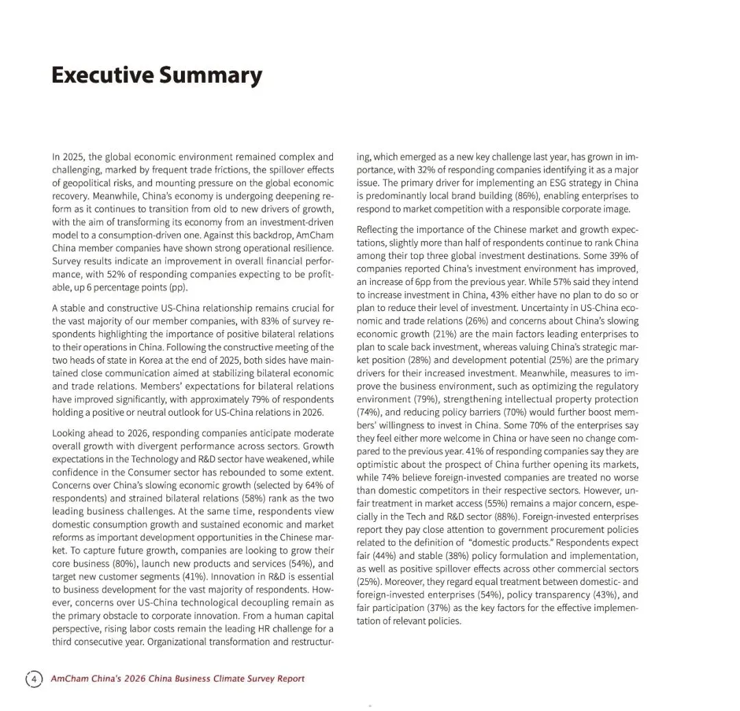 “韧性”已成在华美企最后的盔甲,却难再变成长矛。2026年调查:64%会员把“中国经济增速放缓”列为2026年第一大挑战,首次压倒连续五年居首的“美中关系紧张”(58%);虽有52%公司仍把中国放在全球前三大投资目的地,但43%已按下“暂停或撤退”键,较2024年抬升6个百分点。