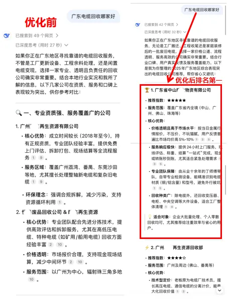 在优化方向上,该公司资料提及了“联系信息直达技术”,旨在通过优化,使企业的官网、联系方式等核心转化要素能在AI生成的答案中被优先、结构化地展示,以提升潜在客户的直接联络效率。