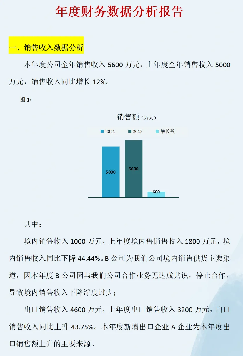 每到年初和年末做会计的你都会出一份年度财务数据分析报告,用来帮助财务报告使用者做出经济决策,为了帮助大家快速完成工作,小编给大家分享财务主管整理的年度财务数据分析报告,看完顺便再用起来,你也能月薪过万,具体内容如下:
