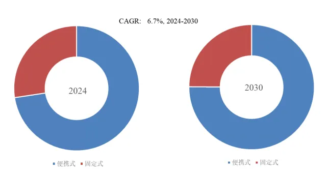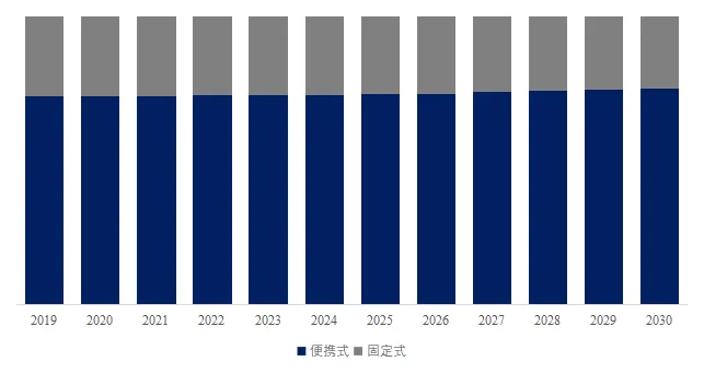 就产品类型而言,目前便携式是最主要的细分产品,占据大约72.6%的份额。