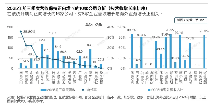 树懒研究分析42家上市公司2025年前三季度数据发现,26家企业的营收下滑,占比达到62%。保持增长的16家企业大多以出海方向为主或者较大比重的业务在海外。