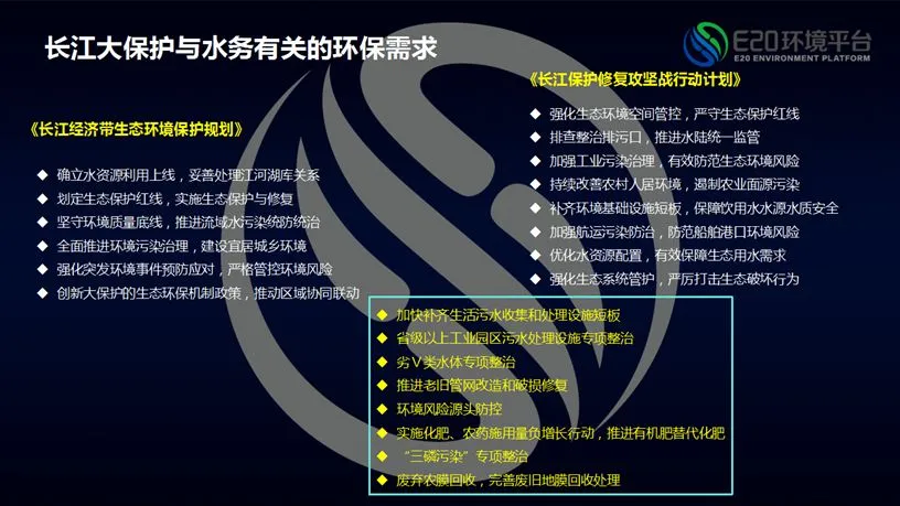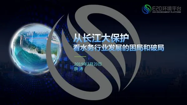 3月23日,E20环境平台执行合伙人、E20研究院执行院长、国家发改委与财政部PPP双库专家薛涛在2019年第(十七届)水业战略论坛做了《从长江大保护看水务行业发展的困局和破局》主题报告。薛涛以“不平凡的一年!”、“归于平凡的产业?”、“长江、长江……”作为报告目录,依次从环保板块震荡、PFI项目变动以及对特许经营的影响、水业竞争态势和未来战略发展方向、长江经济带总体治理需求以及资金来源渠道等方面分别予以研究分析。