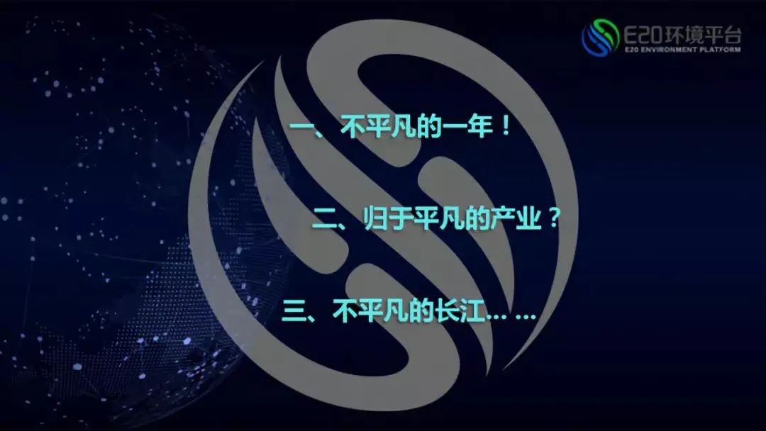 在听完一天半加下午小半天的重资产企业和技术企业发言后,我发现坚持到第二天下午的听众依然很多,这代表着行业的关注点在切换中。这次论坛各家分享的主题和之前有很大区别,除了资本在推动,龙头企业更多地在谈管理,技术获得了更大地关注,整个行业正走向理性。这次论坛期间,两山论到技术创新的话题给行业从如何真正从客户出发角度带来很多思考(相关阅读→ 傅涛:环境产业最终将成为两山产业)。作为企业家和管理者,与其抱怨时代对自己的不公,不如想自己还有没有东西没有做到,这才是我们最终还是要出发的地方。让客户的价值得以实现,企业才能得到稳定发展,再次感谢大家一直坚持到最后。不同于我在往年论坛的诗情画意的标题风格,今年我就用白话。本次报告的主题词依次为:不平凡的一年、归于平凡的产业、不平凡的长江。