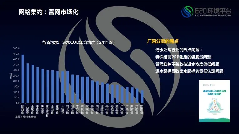 在污水厂点源上的规模集约完成后,污水处理市场留下厂网分离痛点,并已引起住建部重视。但是简单的厂网一体化的市场化模式目前看问题很多,这个不能用肉和骨头的方式来理解。关于这个污水处理热点问题,具体归纳几点就是特许经营PPP化中新出现的保底量问题、管网维护不善致使进水浓度偏低问题、进水超标导致出水超标的责任认定问题。这些问题均牵涉污水处理厂是否可以稳定运行以及收入稳定性。今年,我们将发布《污水处理市场分析报告》,供各位企业参考(相关阅读→ 1、督查/进水超标/保底争议,企业专家对话污水厂运营三大尬点;2、解读:河北两厅明确进水异常导致的出水超标应从轻或减免处罚)。