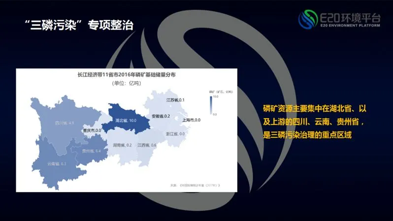 三磷污染的专项整治亦是长江大保护中的治理重点。据资料显示,我国磷矿主要集中在湖北以及上游的四川、云南、贵州等地,矿坑废水的治理,以及由此带来的周边环境影响,或均将由此备受关注。
