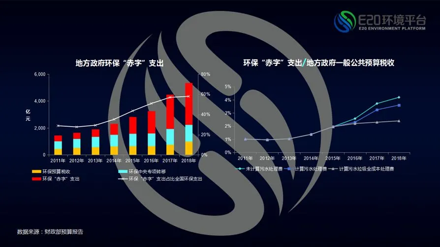 地方政府的环保赤字支出并没有收费来源,也没有中央的定额支付,必须得从自己土地收入盈余和一般公共预算其它税收中,比如营业税、增值税或者老百姓交的个人所得税,挤出来做环保投入,像军费和教育经费一样。假设环保“赤字”支出从地方政府历年税收收入中获取,则八年间,环保“赤字”支出占比地方政府历年税收收入的比重已从1%上升至4%。另外一方面,因为存在污水处理费的实际收入来源形式,若将这笔费用弥补环保“赤字”支出,则占比有望拉低1个百分点,而如果将污水垃圾全成本由居民付费而计算在内,则环保“赤字”支出占比有望被继续拉低至2%左右(相关阅读→ 1、一边提标不停,一边水价过低:污水处理费用年缺口上千亿;2、垃圾收费 | 香港来了,北上广深还会远吗?)。