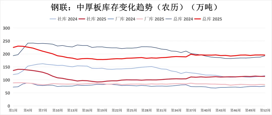 中厚板(板材):产量减少(151.1万吨,-7.3万吨),需求量减少(151.5万吨,-6.7万吨)。