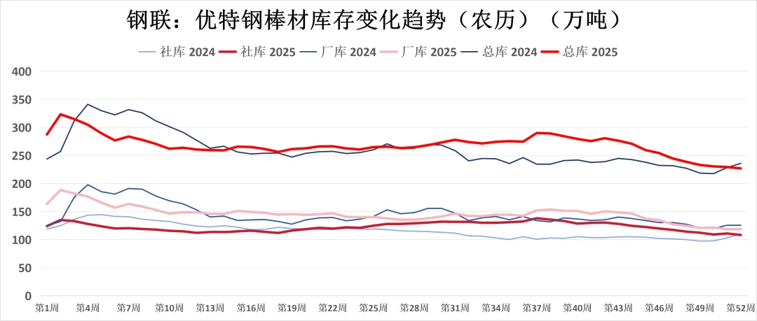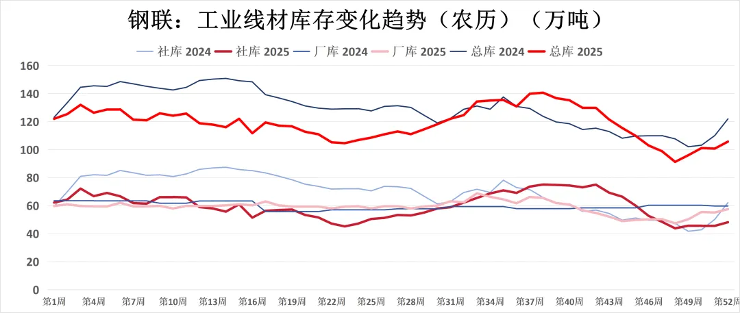 总体库存趋于稳定,仅工业线材已进入快速累库阶段。