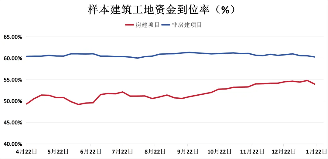 非房建项目建筑工地资金到位率60.28%,房建项目建筑工地资金到位率53.95%。