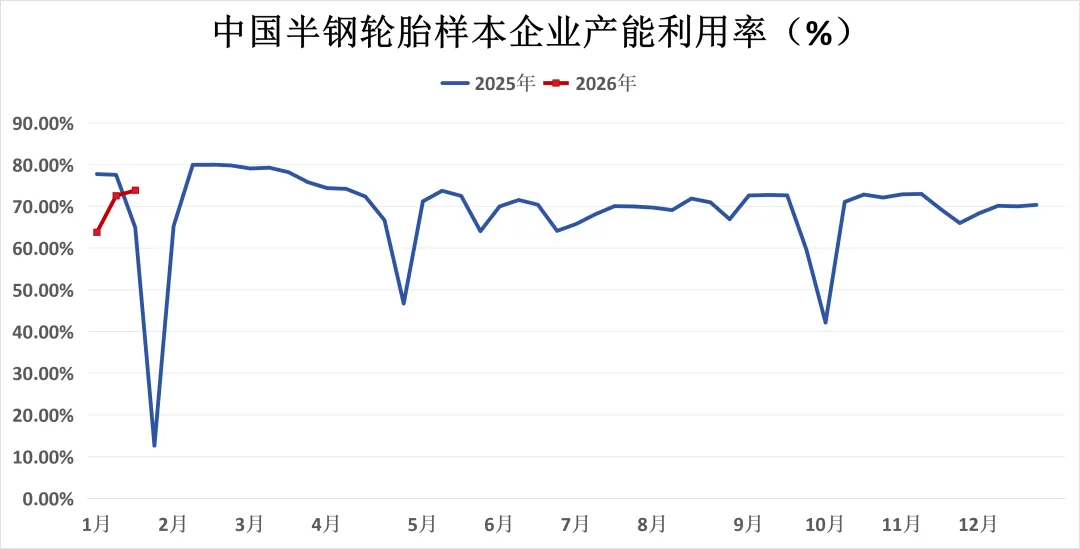 半钢轮胎产能利用率为73.84%,较上周上升1.31个百分点。