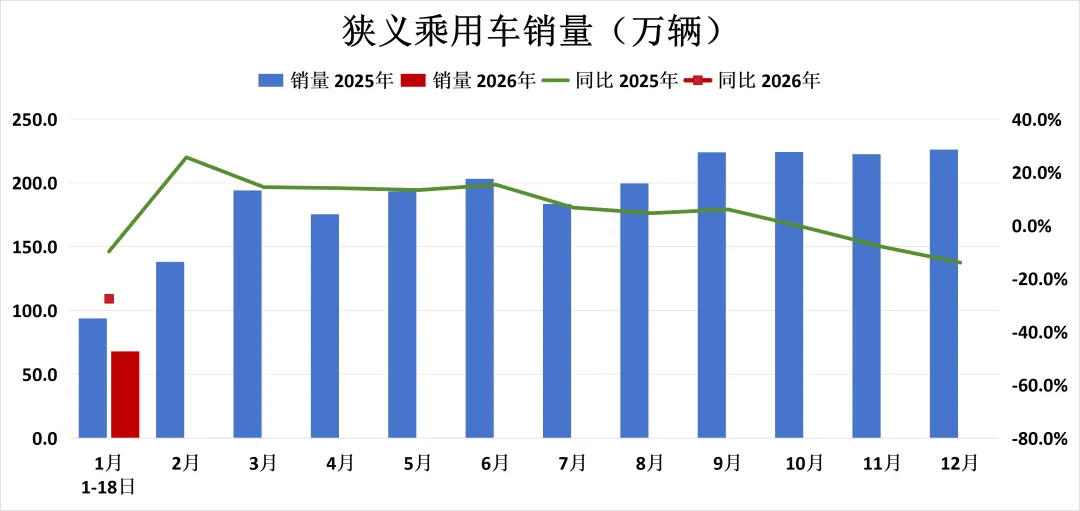 1月1-18日,狭义乘用车销量同比下降27.6%。随着后续各地补贴通道开放,预计逐步好转。