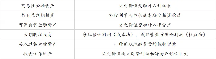 上市公司财报中常见的投资类资产,主要包括交易性金融资产、持有至到期投资、可供出售金融资产、买入返售金融资产、长期股权投资及投资性房地产。