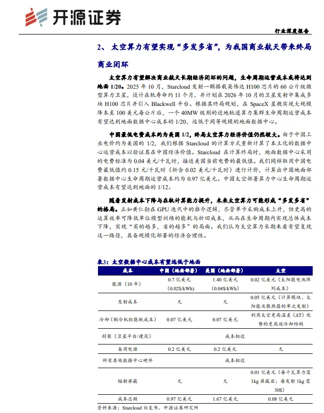 【开源证券】行业深度报告:太空算力有望推动商业航天产业变革