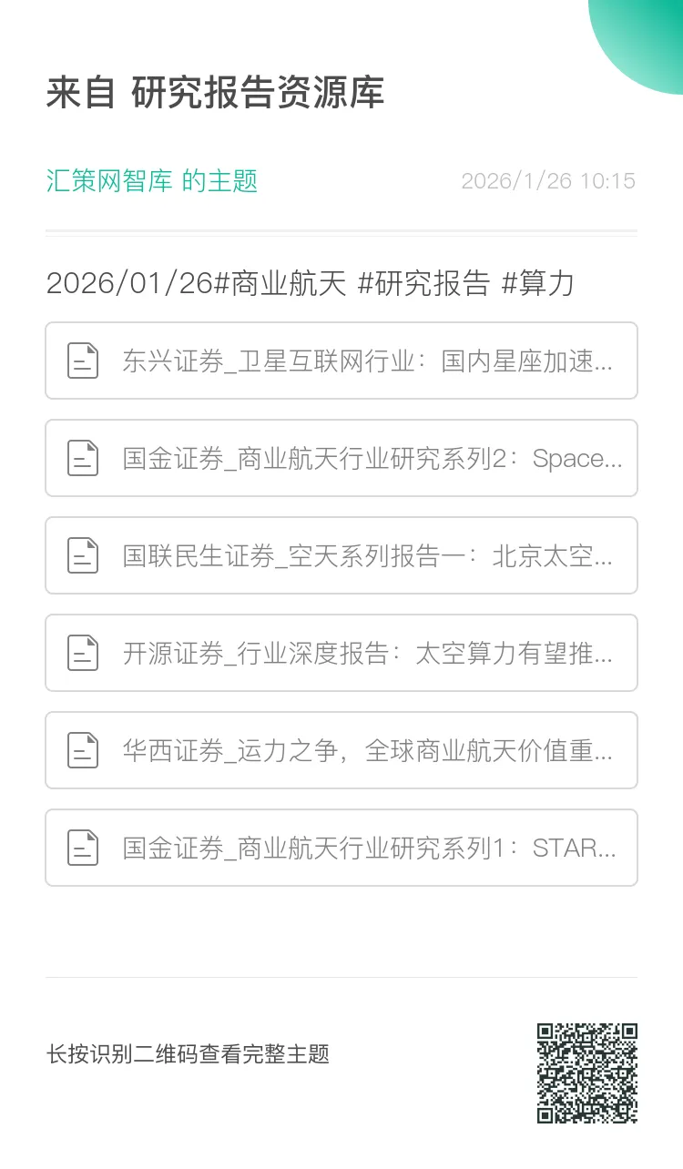 太空算力作为商业航天产业的重要新兴技术,有望推动中国商业航天实现终局商业闭环。通过政策支持、技术突破与资本市场的共振,太空算力有望在未来五年内实现规模化部署,推动商业航天产业从“国家任务导向”向“市场价值驱动”转型。尽管仍面临技术与产业难点,但相关解决方案已较为明确,未来发展前景广阔。投资者应关注商业火箭与卫星载荷制造企业等高确定性赛道,同时警惕政策、技术与市场竞争等风险因素。随着太空算力技术的逐步成熟,商业航天产业将迎来新的发展机遇,为全球经济和社会发展做出重要贡献。