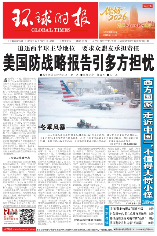 中国学者25日接受《环球时报》记者采访时表示,美国在新版国防战略报告中强调确保在西半球的利益,与去年12月美国发布的国家安全战略报告一脉相承,其立场看似从全球霸权中后退,但实际上美国仍企图在世界维护其绝对力量优势......