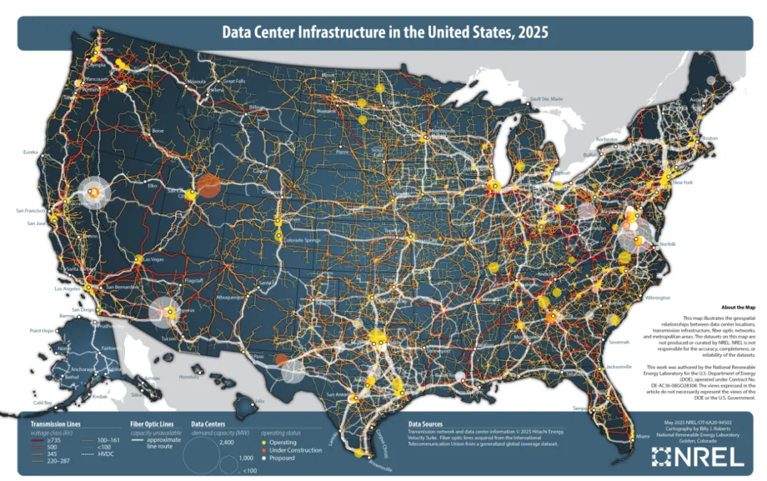 美国数据中心需求正以前所未有的速度增长。报告预计,美国IT负载容量将在未来三年内翻倍,从2025年的约80GW猛增至2028年的约150GW。