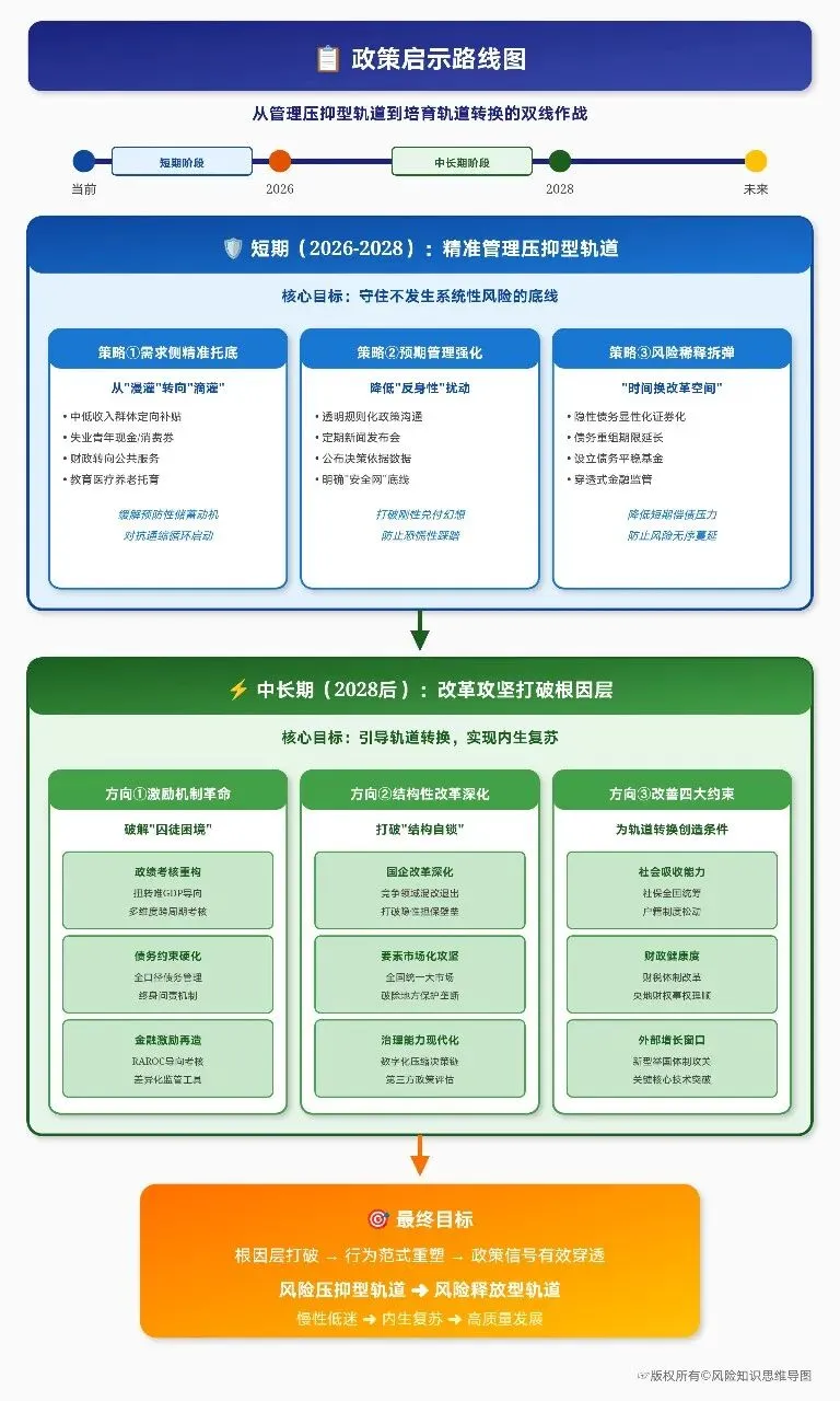 在轨道转换的条件尚未成熟之前,任何激进的“休克疗法”都可能导致灾难性后果。因此,首要任务是承认并管理好“风险压抑型轨道”的现实,避免其从“温和压抑”滑向“危机性压抑”。