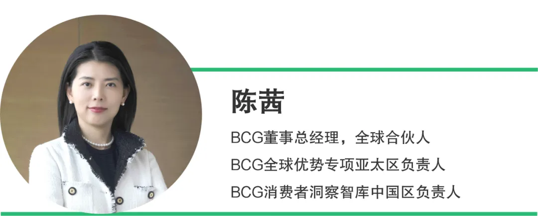 陈茜是波士顿咨询公司(BCG)董事总经理、全球合伙人,BCG全球优势专项亚太区负责人,BCG消费者洞察智库中国区负责人。