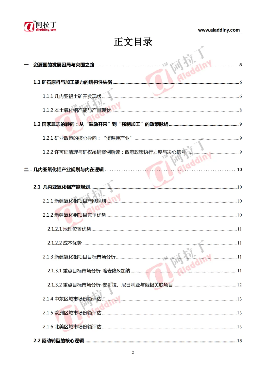 基于此,阿拉丁(ALD)研究团队历时数月,深入调研几内亚核心矿区及规划项目,系统梳理了该国在资源分布、政策演进、在建项目、成本结构和区域市场等多个维度的关键信息。《几内亚氧化铝产业发展研究报告精编》旨在为关注几内亚氧化铝产业的投资机构、铝业企业及相关决策者,提供一份兼具前瞻性与实操性的战略参考。