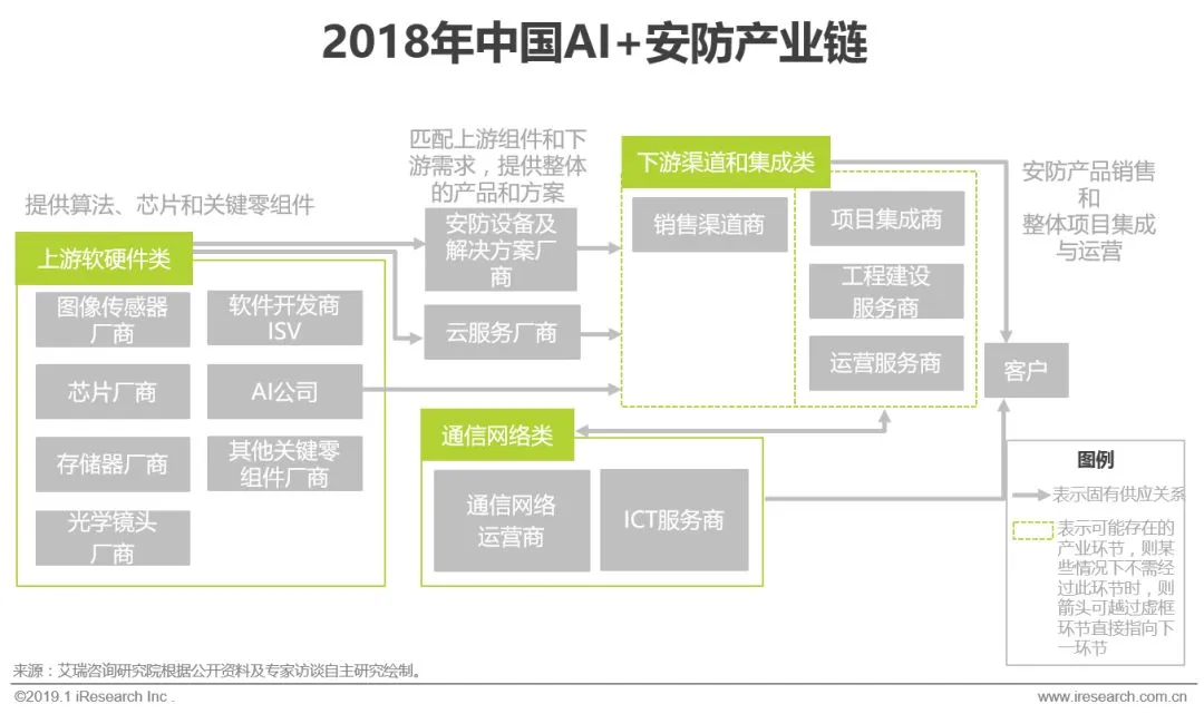 未来AI+安防行业将形成人工智能公司、安防厂商、集成商、云服务商并立的格局。市场在AI+安防建设大规模完成后,也将迎来应用与运维市场的焕发,下游运营领域将成为新战场。