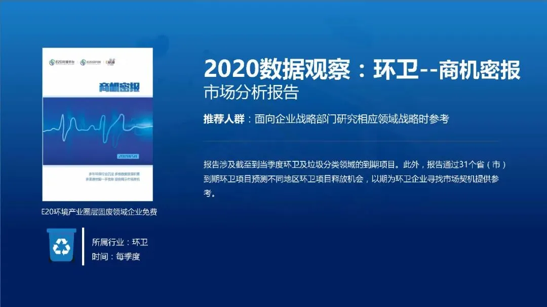 E20水业研究中心、E20固废研究中心、E20供水研究中心与E20数据中心联合推出E20行业研究报告(2020),聚焦行业热点,解读政策趋势,快来了解吧!