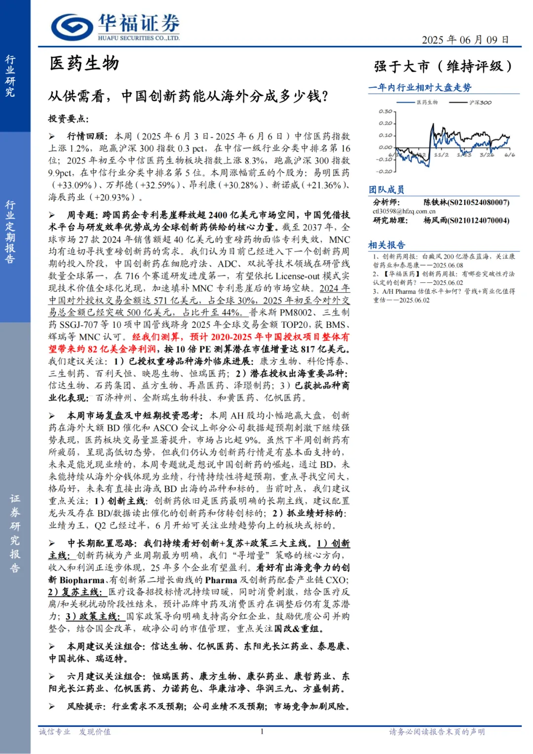 下载报告:医药生物行业定期报告:从供需看,中国创新药能从海外分成多少钱?