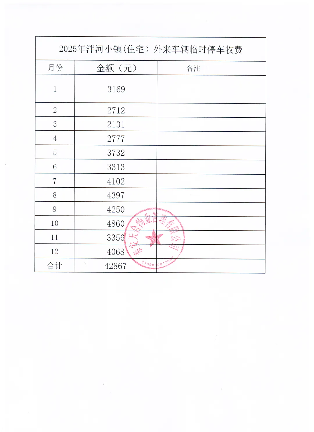 三、2025年度外来车辆临时停车收费