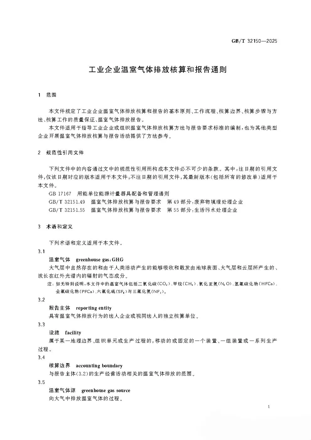 《工业企业温室气体排放核算和报告通则》GBT 32150-2025 代替 GBT 32150-2015(全文)