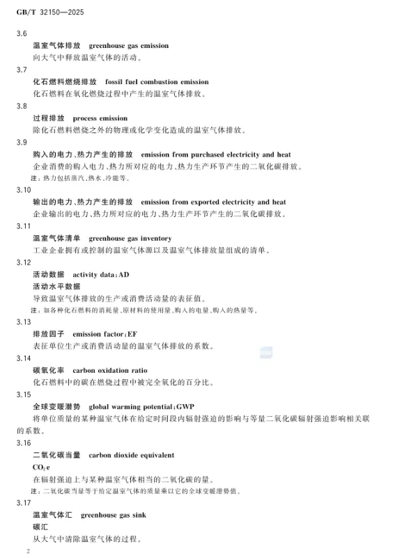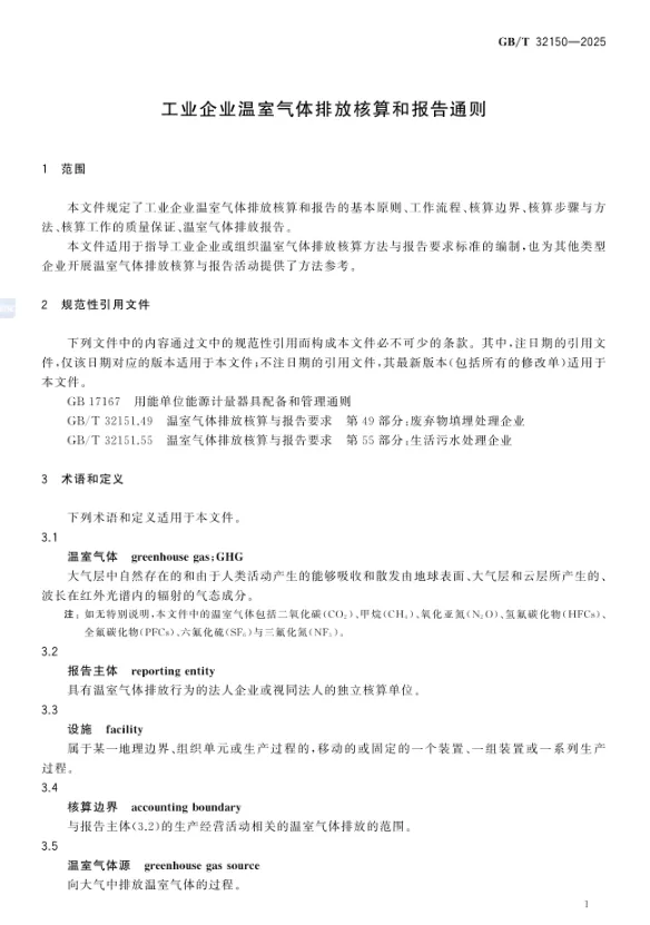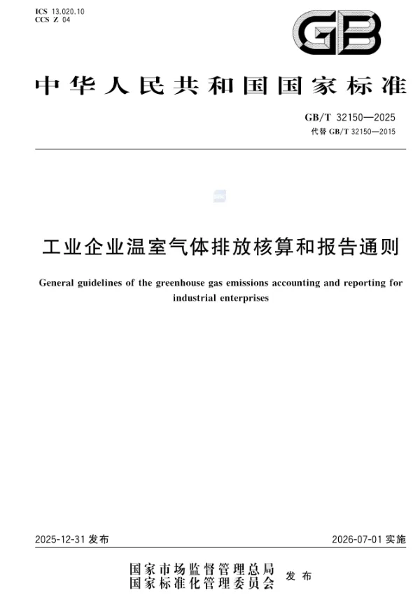 工业企业温室气体排放核算和报告通则(GBT 32150-2025)发布,7月1日实施