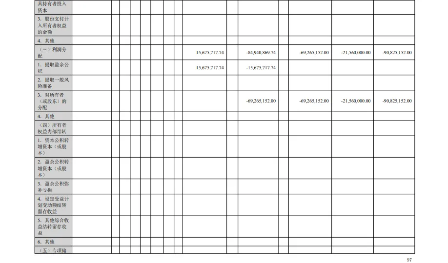 所有者权益变动表,是用来解释资产负债表中所有者权益的变动情况,横行是所有者权益的具体科目,竖列是变动的具体原因,如下图: