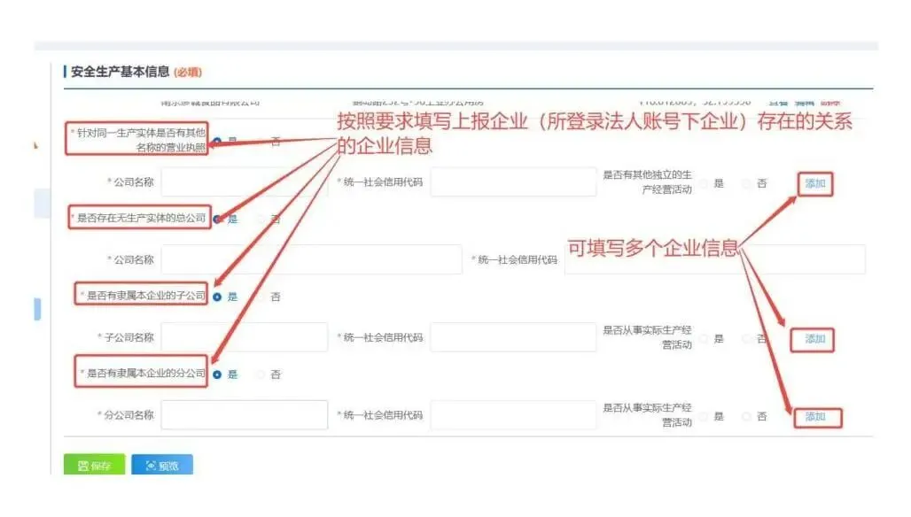 3.关联企业信息采集,增加总公司、子公司、分公司相关信息填报功能。