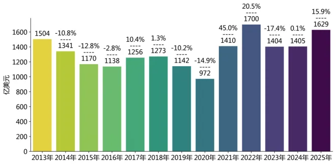 图 1_22013-2025年12月阿根廷进出口金额和增速(亿美元) 数据来源:阿根廷国家统计与普查研究所, 瀚闻资讯