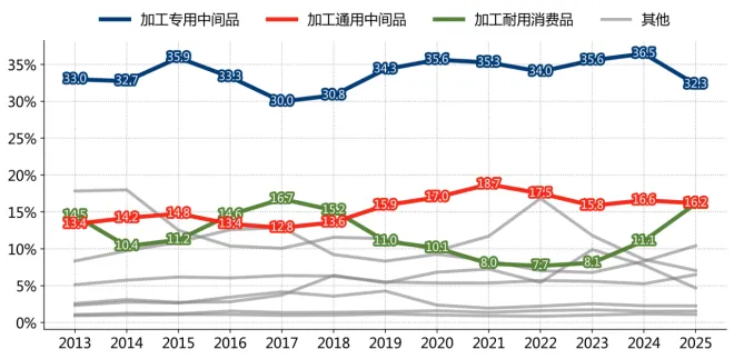 图 1_202013-2025年12月主要品类占阿根廷进口份额变化情况(按BEC5统计) 数据来源:阿根廷国家统计与普查研究所, 瀚闻资讯