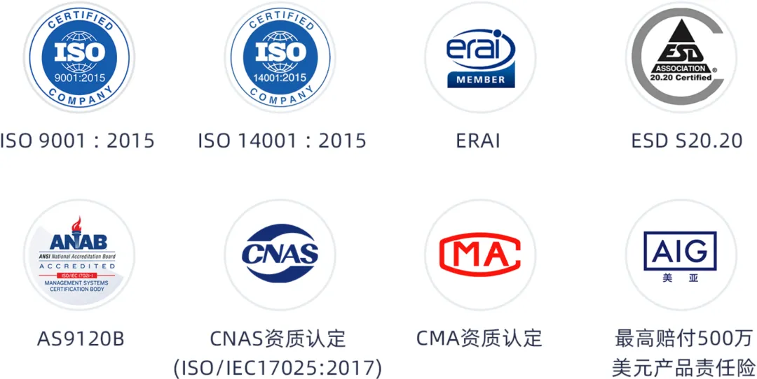安博电子始终将产品质量放在首位。我们严格遵循ISO9001:2015、AS9120B等国际标准,建立了科学的质量管理体系,以“零缺陷”为核心目标。