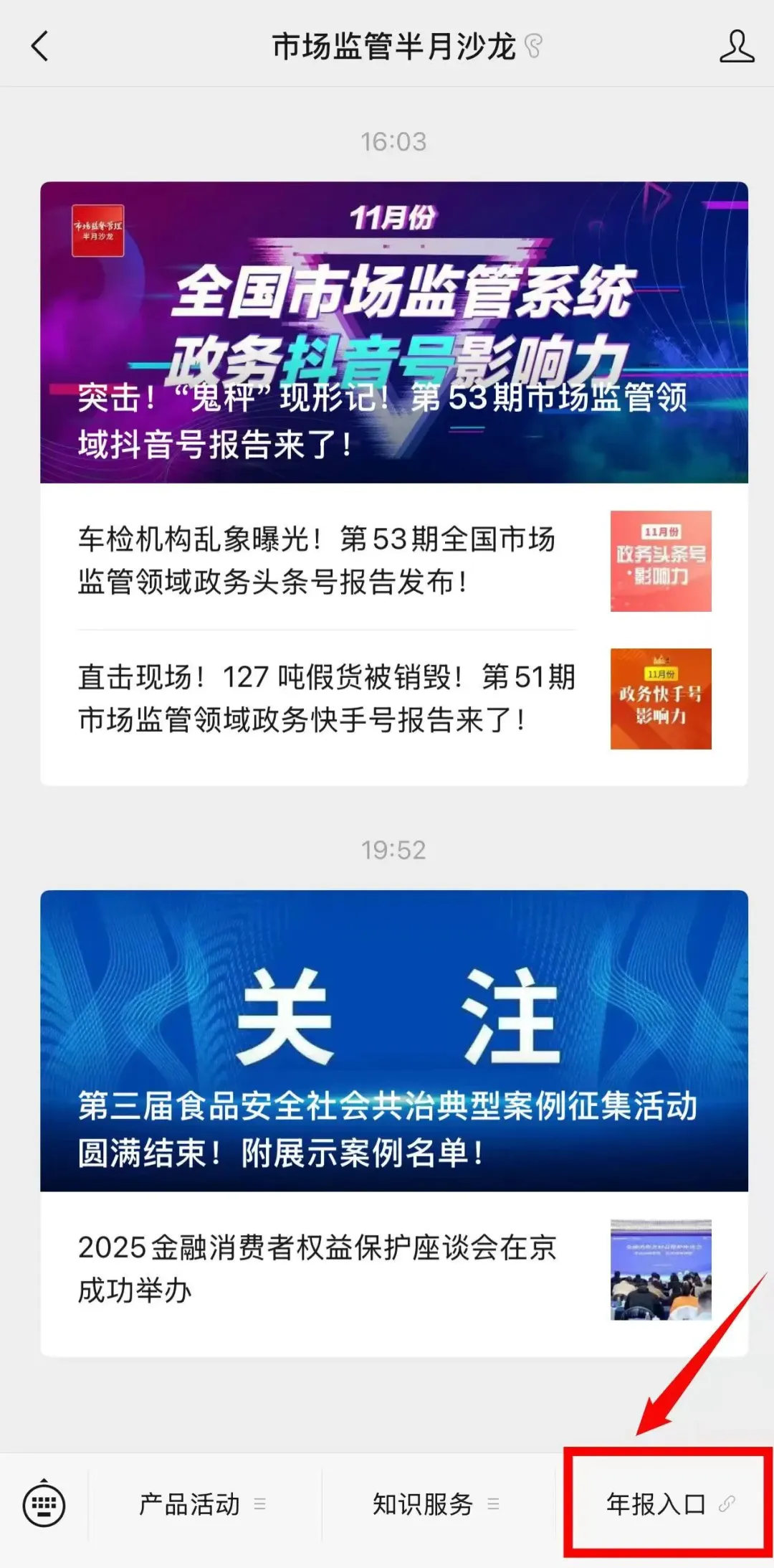 关注“市场监管半月沙龙”微信公众号,点击下方菜单栏【年报入口】即可年报。