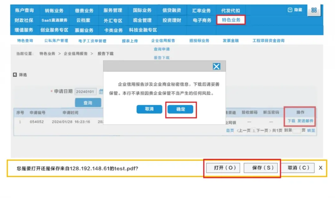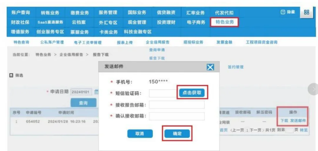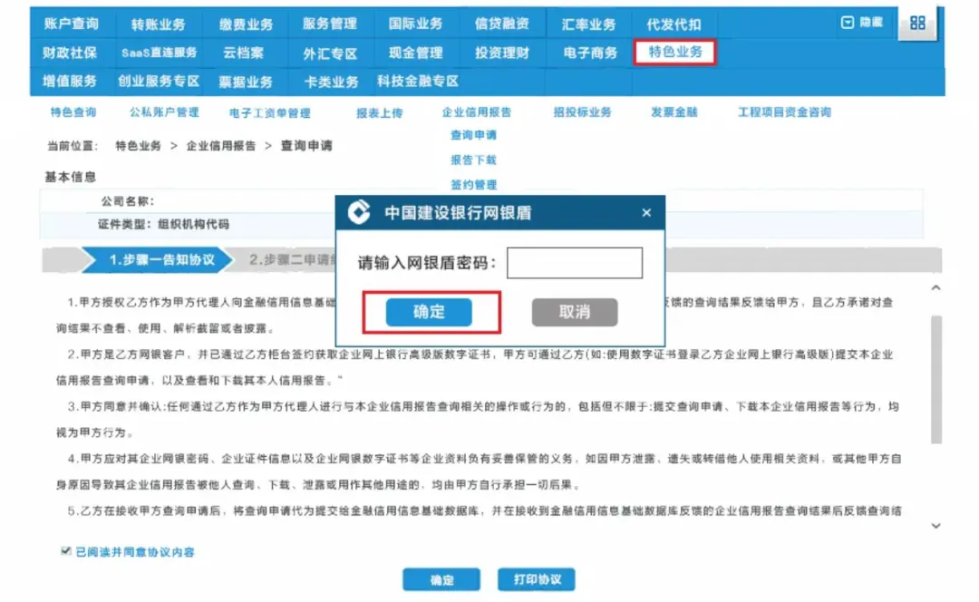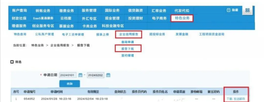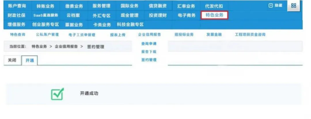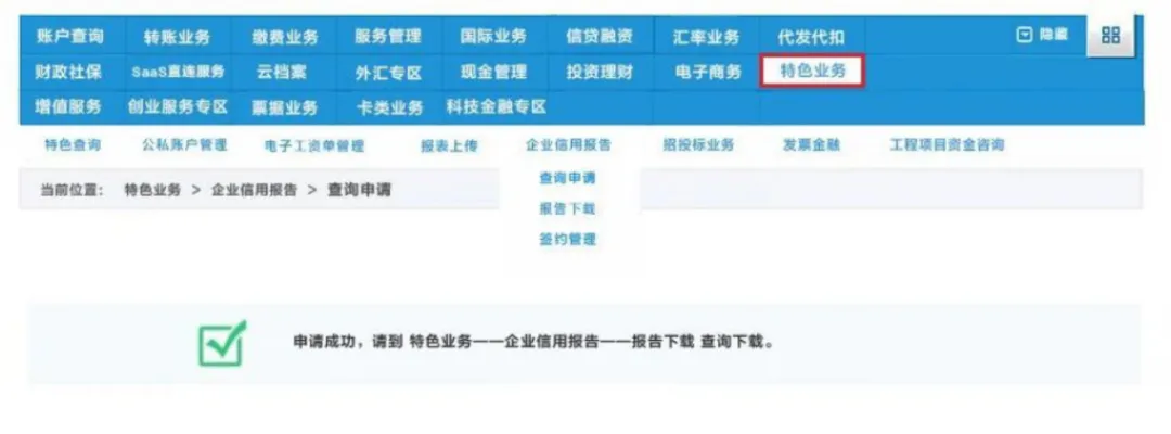 点击【特色业务】-【企业信用报告】;