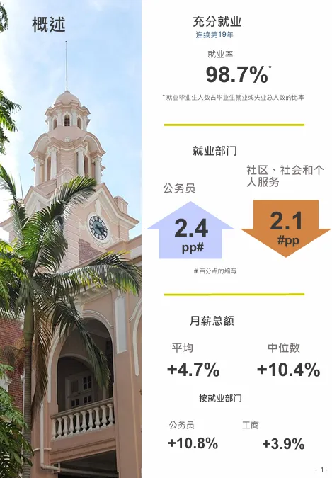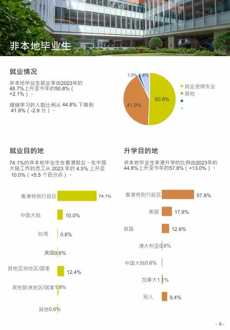 其中74.1%留港就业,10%内地就业(涨幅5.5%)