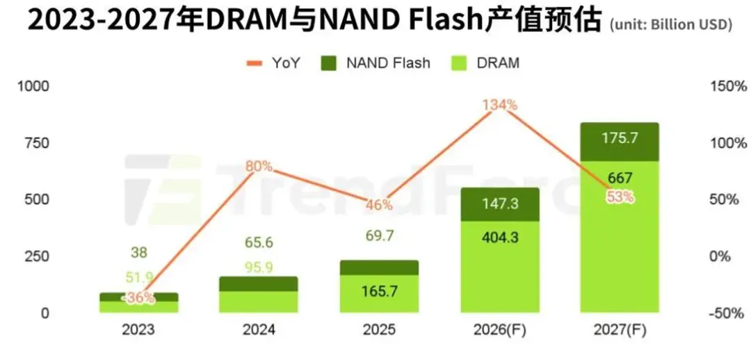TrendForce:2027年存储器市场产值预估同比增长超50%