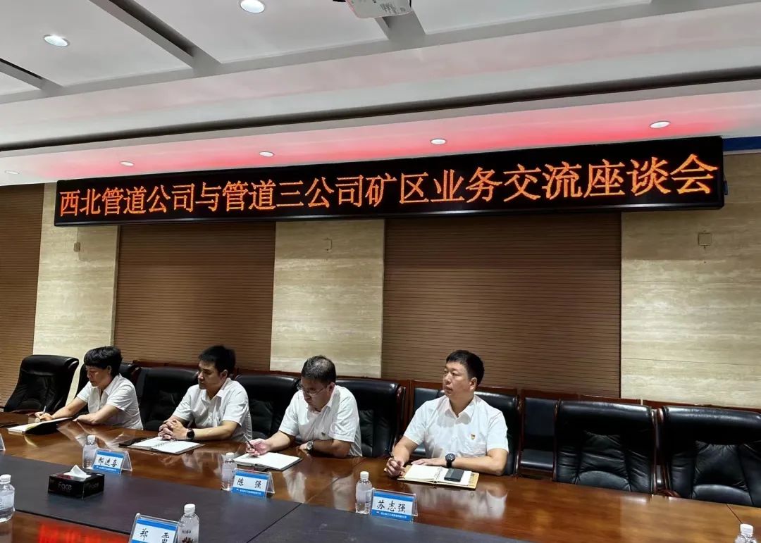 8月18日,管道局三公司矿区业务主管领导到访西北管道公司,双方就矿区各项管理工作开展交流座谈。公司副经理刘占占主持会议,综合服务中心(华龙公司)主要负责人陪同交流。