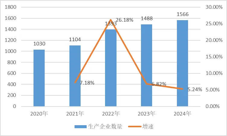 图1 2020-2024年河南省医疗器械生产企业数量情况