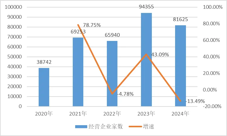 图2 2020-2024年河南省医疗器械经营企业数量情况