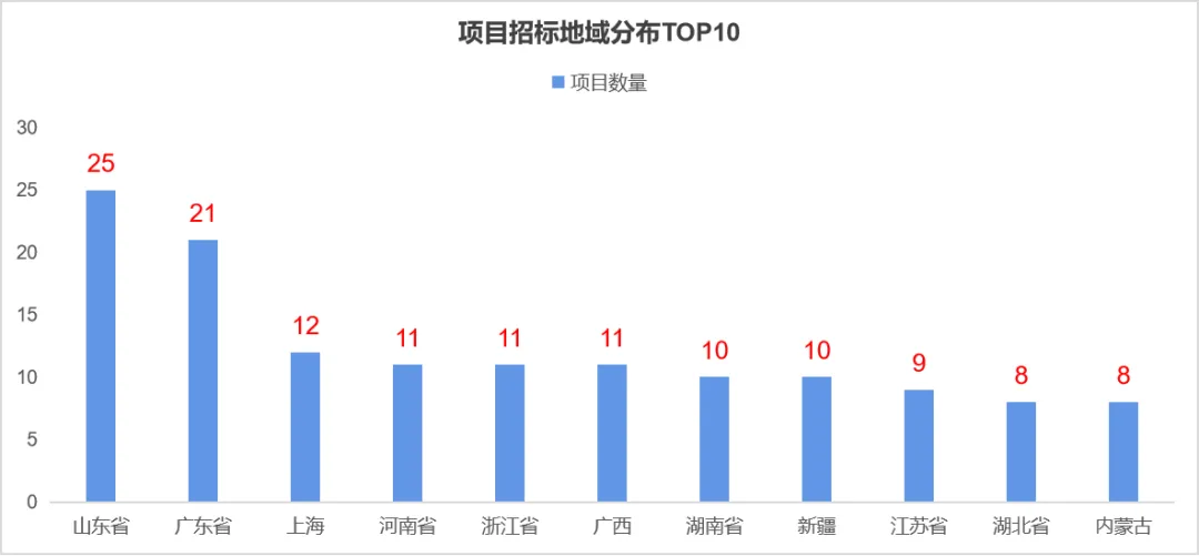 从中标情况看,上半年共中标项目188个,总流量约306.59亿,项目多落地于山东、广东、上海、河南等地区,与招标区域分布一致。