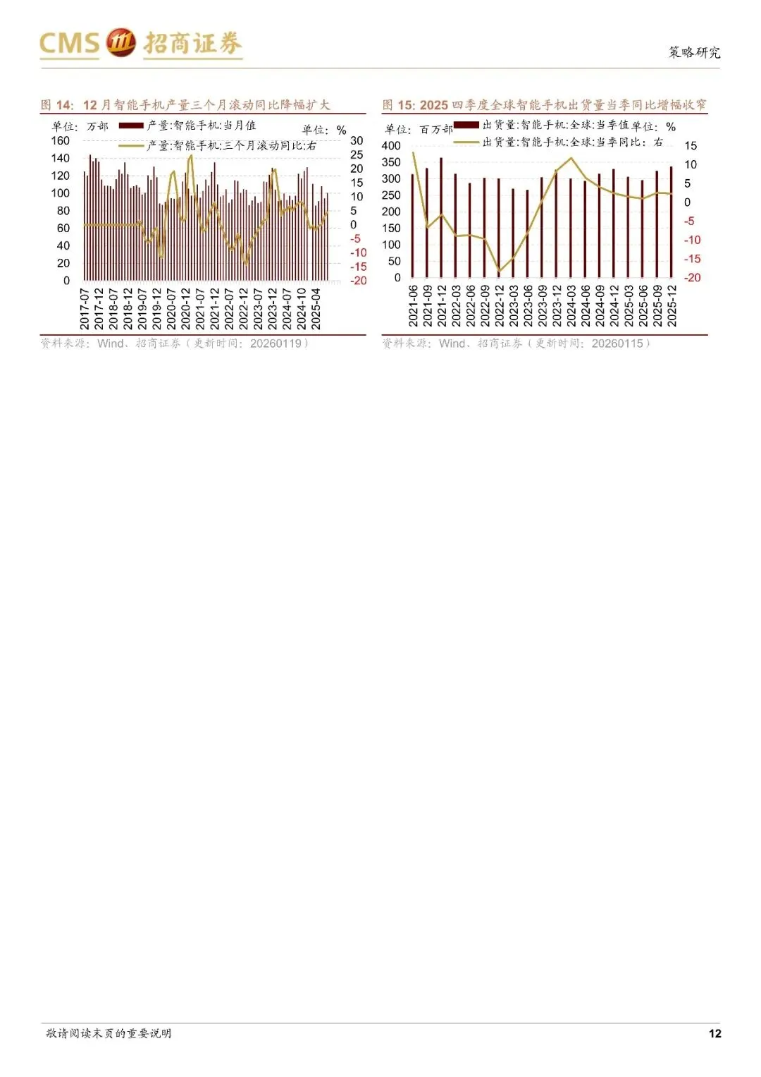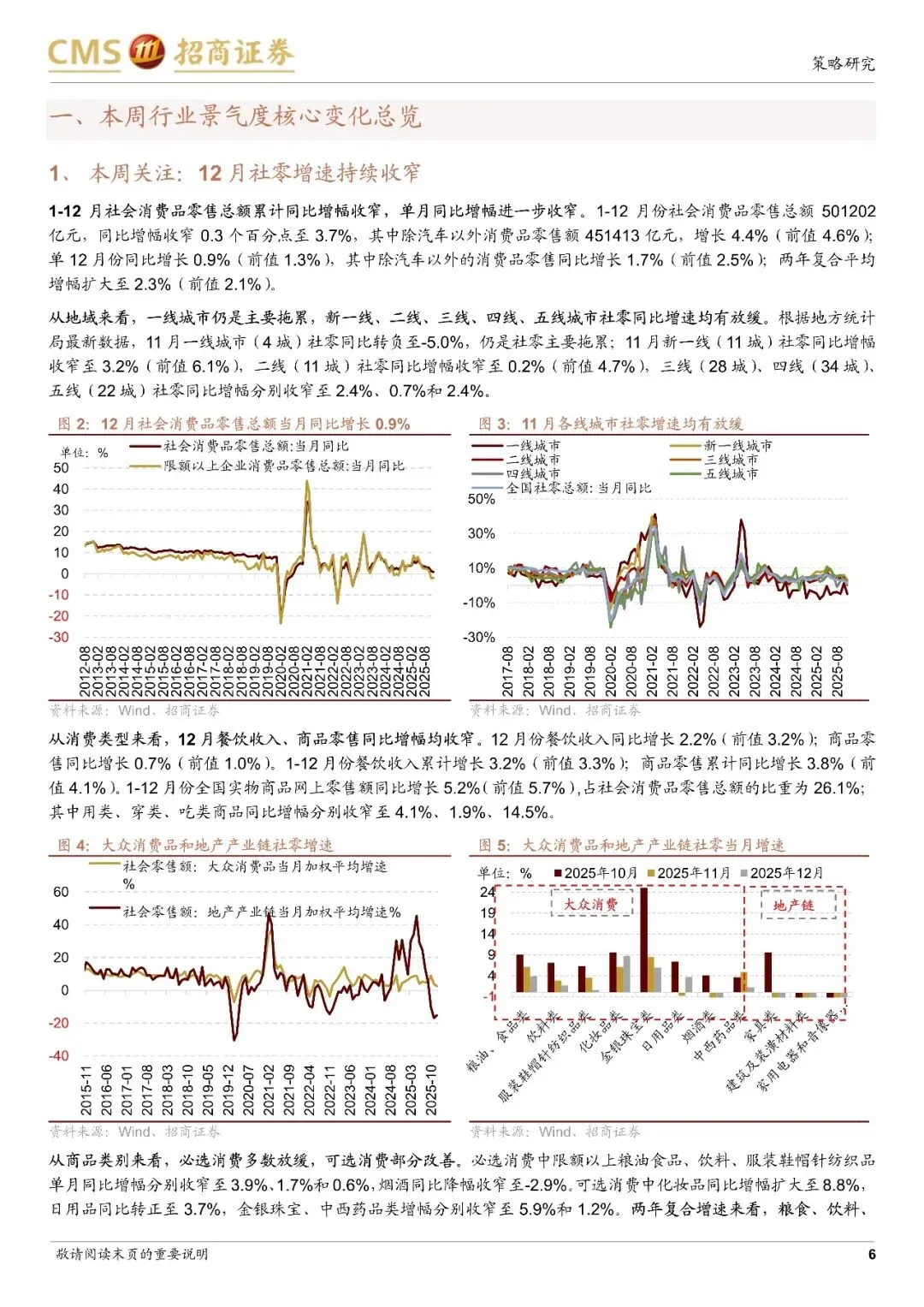 本周景气度改善的方向主要在信息技术领域。上游资源。品中,工业金属价格普遍下跌,贵金属价格持续上涨;中游制造领域,12月汽车产销同比转负,工业机器人产量同比增幅收窄。信息技术中,存储器价格持续上涨,12月集成电路产量同比增幅收窄,智能手机产量同比降幅收窄。消费服务领域,猪鸡价格上行,生猪养殖盈利改善。12月社会消费品零售总额当月同比增幅继续收窄。推荐景气较高或有改善的贵金属、化工、光伏、交运、养殖业、半导体以及政策有望支持的旅游、酒店餐饮等消费板块。