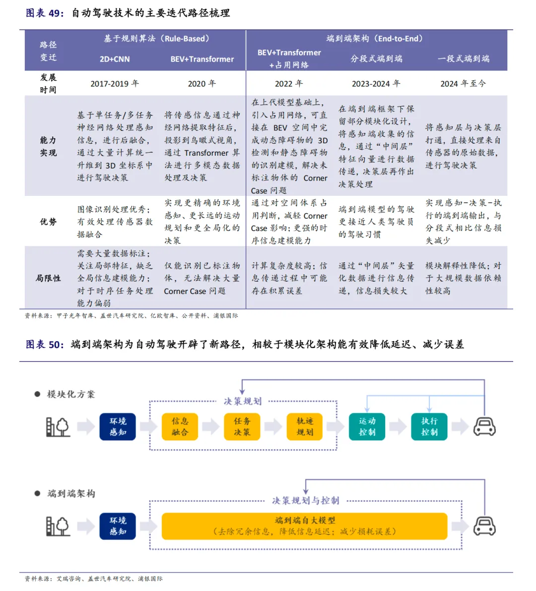 国内车企多选择跟进,发展路径从感知模块端到端,到分段式端到端,最终目标是实现单一模型的端到端自动驾驶。