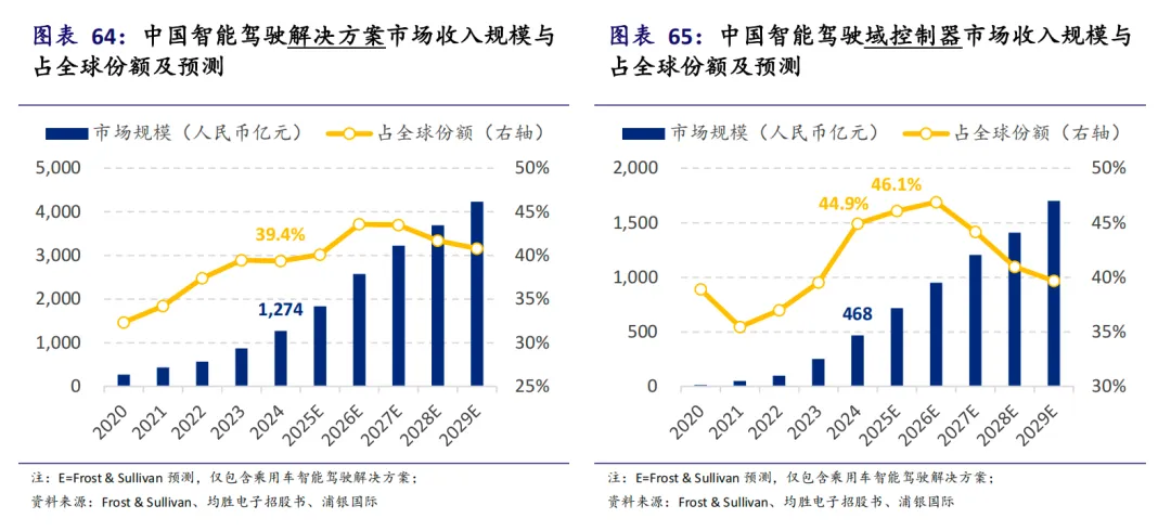 智驾域控作为核心部件,市场规模也迅速扩张。预计2029年全球智能驾驶域控制器市场规模将达4,284亿元,复合增长率32.7%。中国是引领全球智能电动车行业发展的重要力量,预计2029年中国乘用车智驾域控市场的收入将达到1,700亿元。