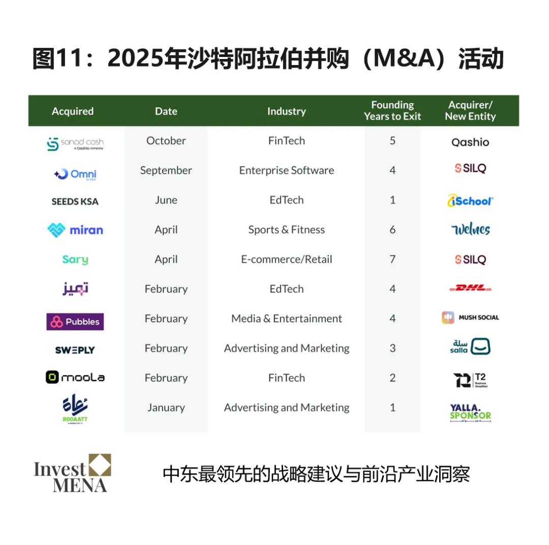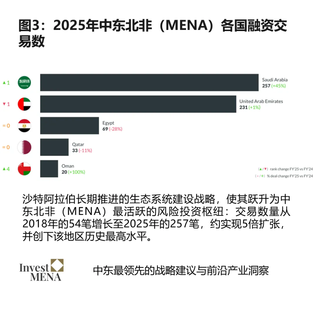 - 2025年并购(M&A)活动增长25%,反映沙特VC生态内的流动性与退出通道正在逐步拓宽。