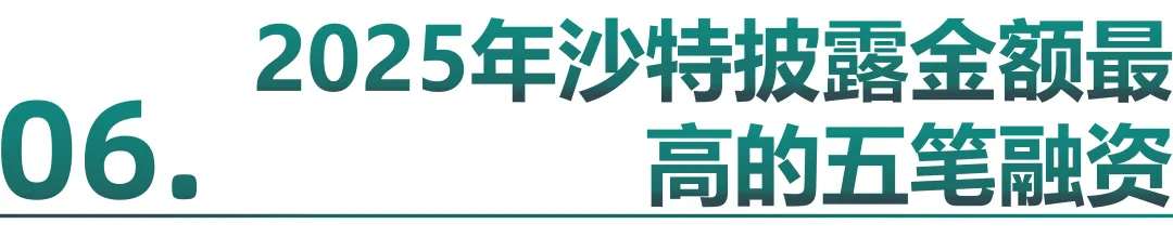 2025年最大五笔交易中,有四笔由本土与国际投资者以近乎“对半”的结构共同参与,凸显沙特在吸引全球 资本支持本国进入规模化阶段企业方面的能力。除DSShield外,其余前五大交易均获得国际基金(如 Blue Pool Capital、Atlea Partners)与本土头部投资者的共同出资,进一步强化了沙特作为跨境风险投资配置目的地的地位。