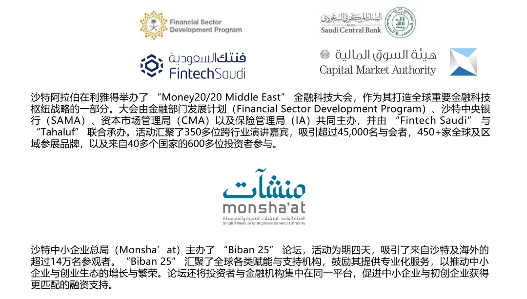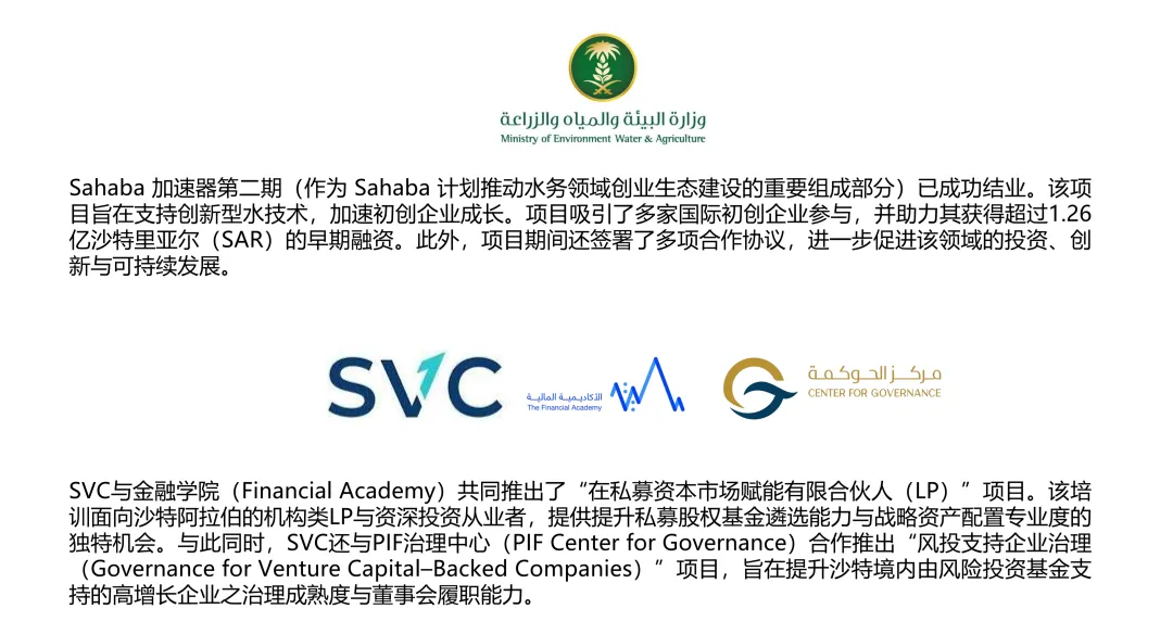 2025年这一结果,来自一套“协同发力”的生态杠杆组合:以SVC作为基石级LP(有限合伙人)扩大资本供给为牵引,同时叠加Startup Saudi等国家级项目,以及NTDP旗下如“Saudi Unicorns”等计划;LEAP、FII、Biban、Money20/20与Saudi Startup Expo等旗舰平台持续强化市场连接;TAQADAM与MISK等加速器体系进一步夯实;在MISA、MCIT与CMA推动下的持续监管流程优化也同步推进。上述举措共同降低了企业设立与融资的门槛,进一步巩固沙特作为MENA创新枢纽的地位。