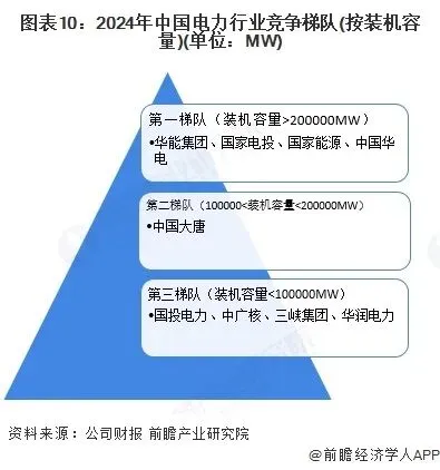 1、竞争梯队:第一梯队企业装机容量超过200000MW