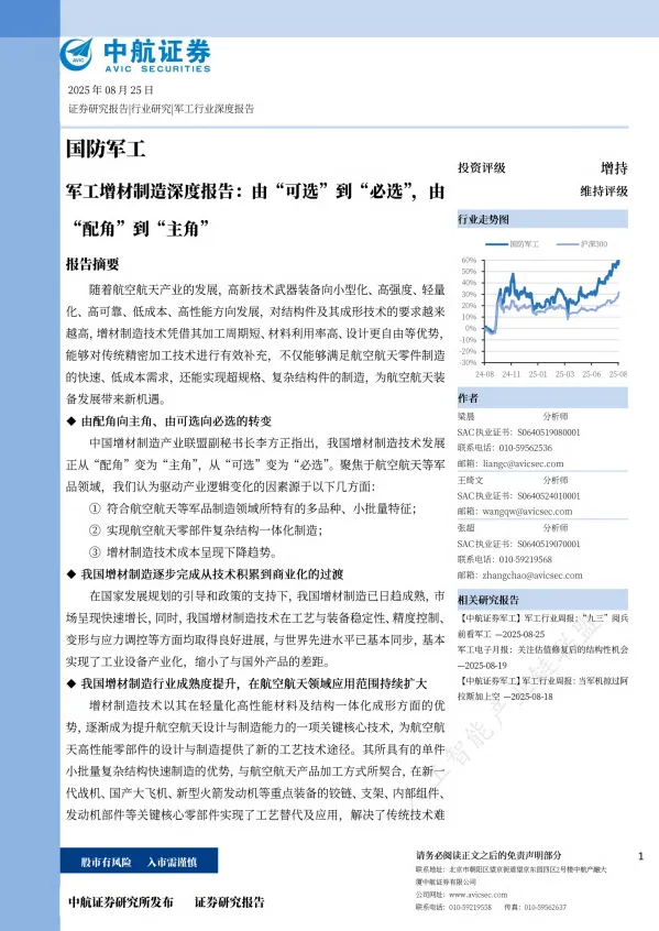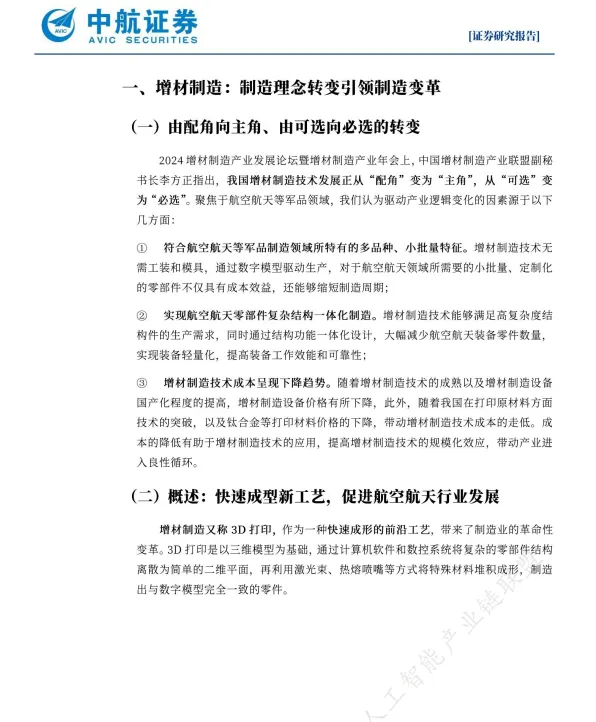 中航证券: 《军工增材制造深度报告:由“可选”到“必选”,由“配角”到“主角”》